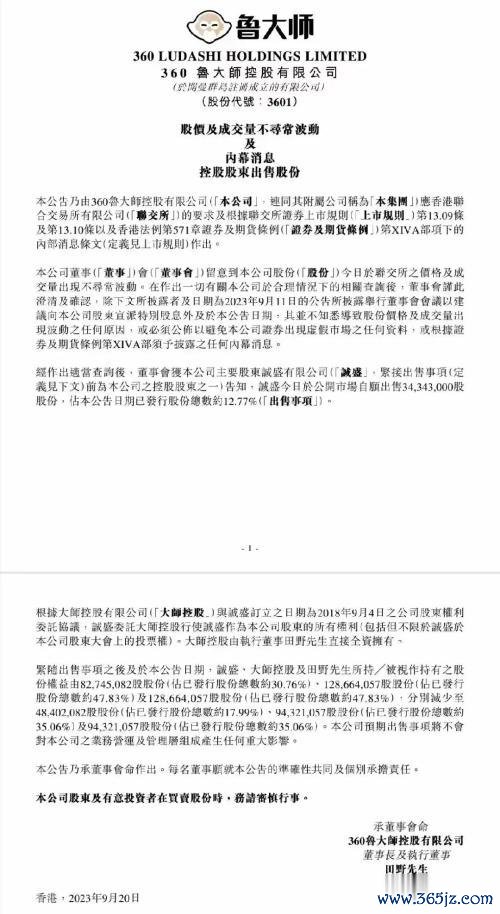 9月20日,鲁大师大股东趁股价高涨减持。据公告显示,鲁大师获主要股东诚盛有限公司告知,诚盛当日于公开市场自愿出售34,343,000股股份,占本公告日期已发行股份总数约12.77%。