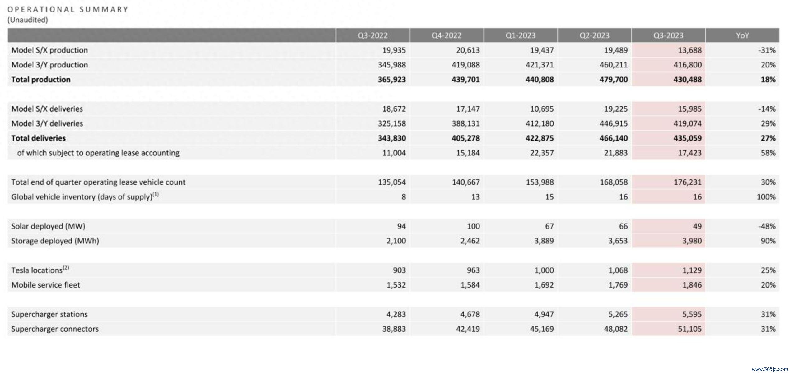 ![]() 雷递网 雷建平 10月19日 美国电动汽车(Tesla,股票代码:“TSLA”)今日发布财报。财报显示,特斯拉2023年第三季度营收为233.5亿美元,较上年同期的214.54亿美元增长9%,较上一季的249.27亿美元下降6.3%。 特斯拉的营收低于华尔街预期,华尔街的预期是240.6亿美元。 ![]() 特斯拉2023年第三季度一共生产了430,488辆车,其中,Model S/X生产了13688辆车,Model 3/Y生产了416,800辆车;一共交付了435,059辆车,其中,Model S/X交付了15,985辆车,Model 3/Y交付了419,074辆车。 特斯拉2023年第三季度毛利为41.78亿美元,较上年同期的53.82亿美元下降22.4%,较上一季度的毛利45.33亿美元下降7.8%;特斯拉2023年第三季度毛利率为17.9%,较上年同期的25.1%下降了7.2个百分点,较上一季度的18.2%下降了0.3个百分点。 特斯拉预计2023年11月30日举办Cybertruck交付活动,这意味着少数精选客户可以拥有他们的车辆。Cybertruck试生产已在特斯拉位于德克萨斯州奥斯汀附近的Giga Texas工厂开始。 Cybertruck将在电动皮卡市场挑战Rivian的R1T、福特的F-150 Lightning和通用汽车的雪佛兰Silverado EV。 特斯拉每年有能力生产超过125,000 辆 Cybertruck,马斯克补充说,到2025年,这一数字有可能提高到250,000辆。但马斯克表示,他希望降低对Cybertruck的“预期”,并补充说特斯拉在提高产量和实现正现金流方面可能面临“巨大挑战”。 ![]() 在特斯拉报告其利润率受到打击(部分原因是卡车产量增加)后,马斯克在财报电话会议上表示:“我们用 Cybertruck 挖了自己的坟墓。” “这是一款很棒的产品,但从财务角度来看,我不知道,它需要一年到18个月的时间才能成为重要的正现金流贡献者。” ![]() 特斯拉还表示,正努力启动并运行Dojo超级计算机,因此增加人工智能开发的支出。 Dojo旨在训练特斯拉的神经网络,以提高该汽车制造商的自动驾驶能力及其人形机器人Optimus。 今日收盘,特斯拉股价下跌4.78%;收盘价为242.68美元,市值为7702亿美元。收盘后,特斯拉股价再度下跌超过4%。 雷递由媒体人雷建平创办,若转载请写明来源。 |
