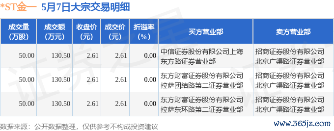 近三个月该股共发生130笔大宗交易,合计成交64.42万手,溢价成交58笔。该股近期无解禁股上市。 截至2024年5月7日收盘,*ST金一(002721)报收于2.61元,下跌1.51%,换手率0.46%,成交量12.17万手,成交额3164.51万元。 ![]() 该股最近90天内无机构评级配资杠杆。 |